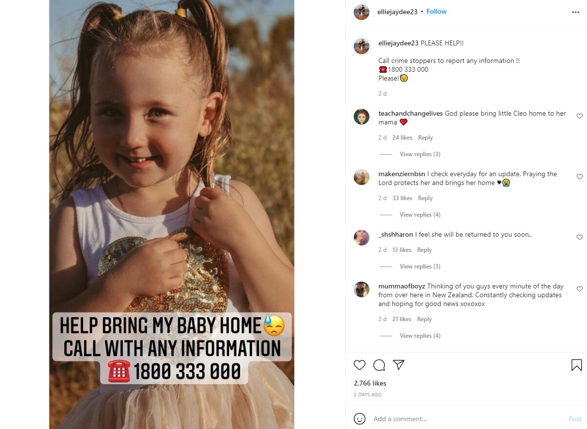 Ellie Smith posts new Instagram video of her missing daughter. The West Australian The heartwarming comment comes after Ellie posted to Instagram early this morning revealing the good news of Cleos rescue to her many followers.